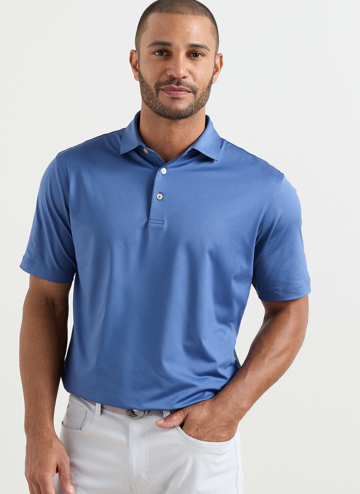 Summer is all the time in our performance jersey polos. These are packed with four-way stretch, wicking and UPF 50+ protection in our signature Summer Comfort fabrication. Finished with a spread collar and three-button placket.